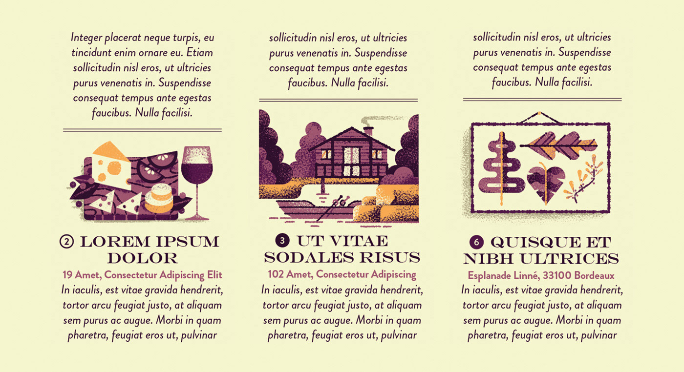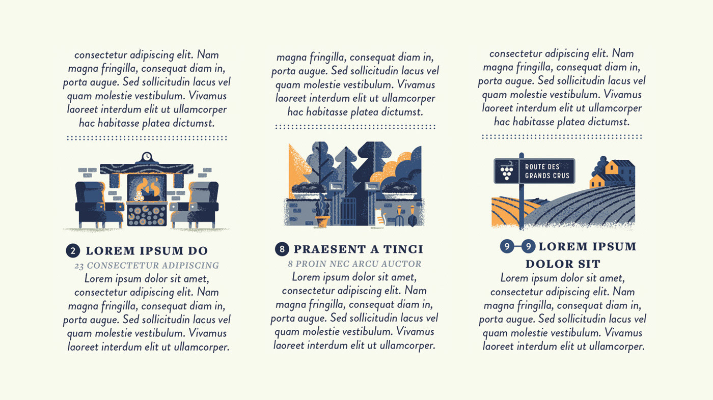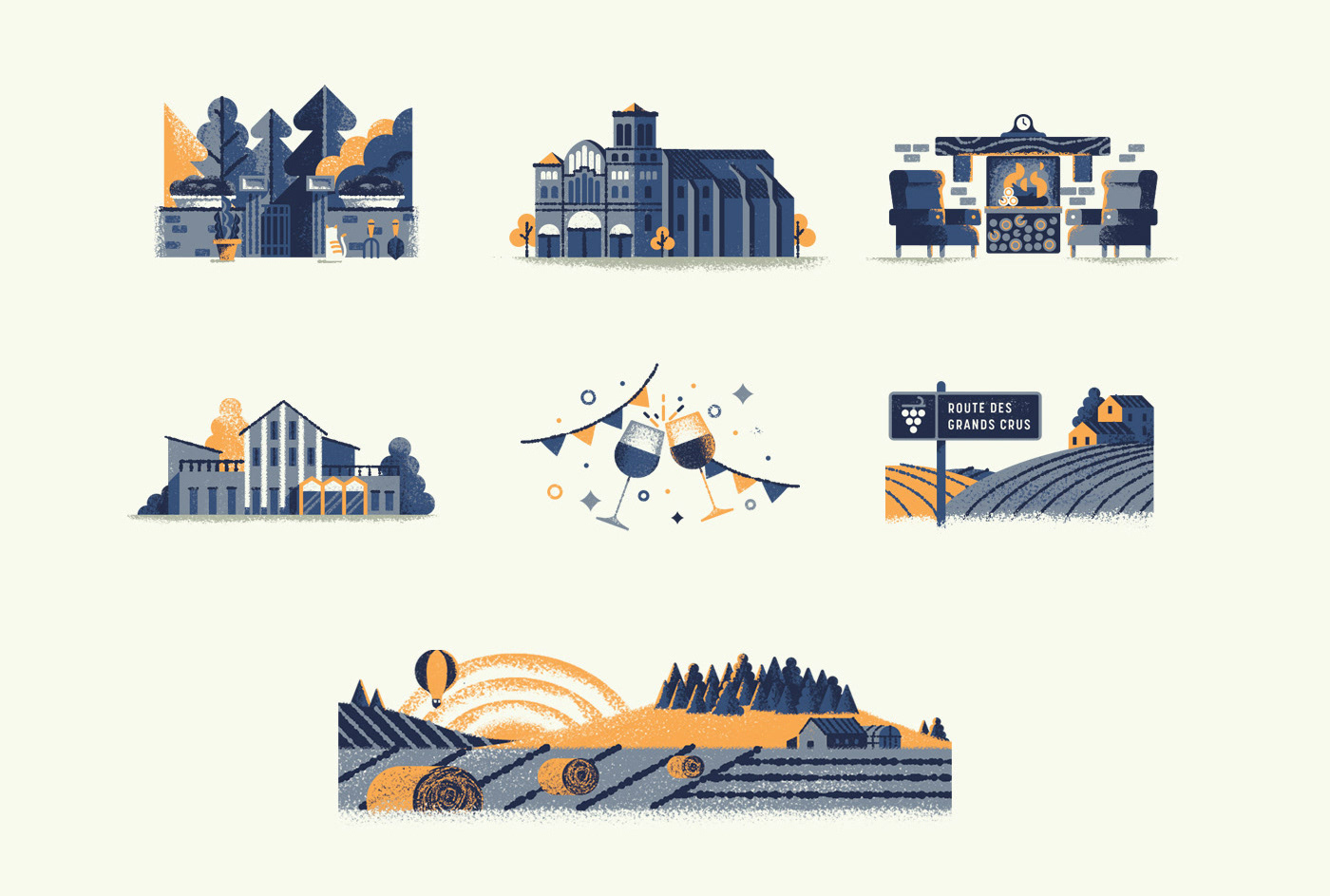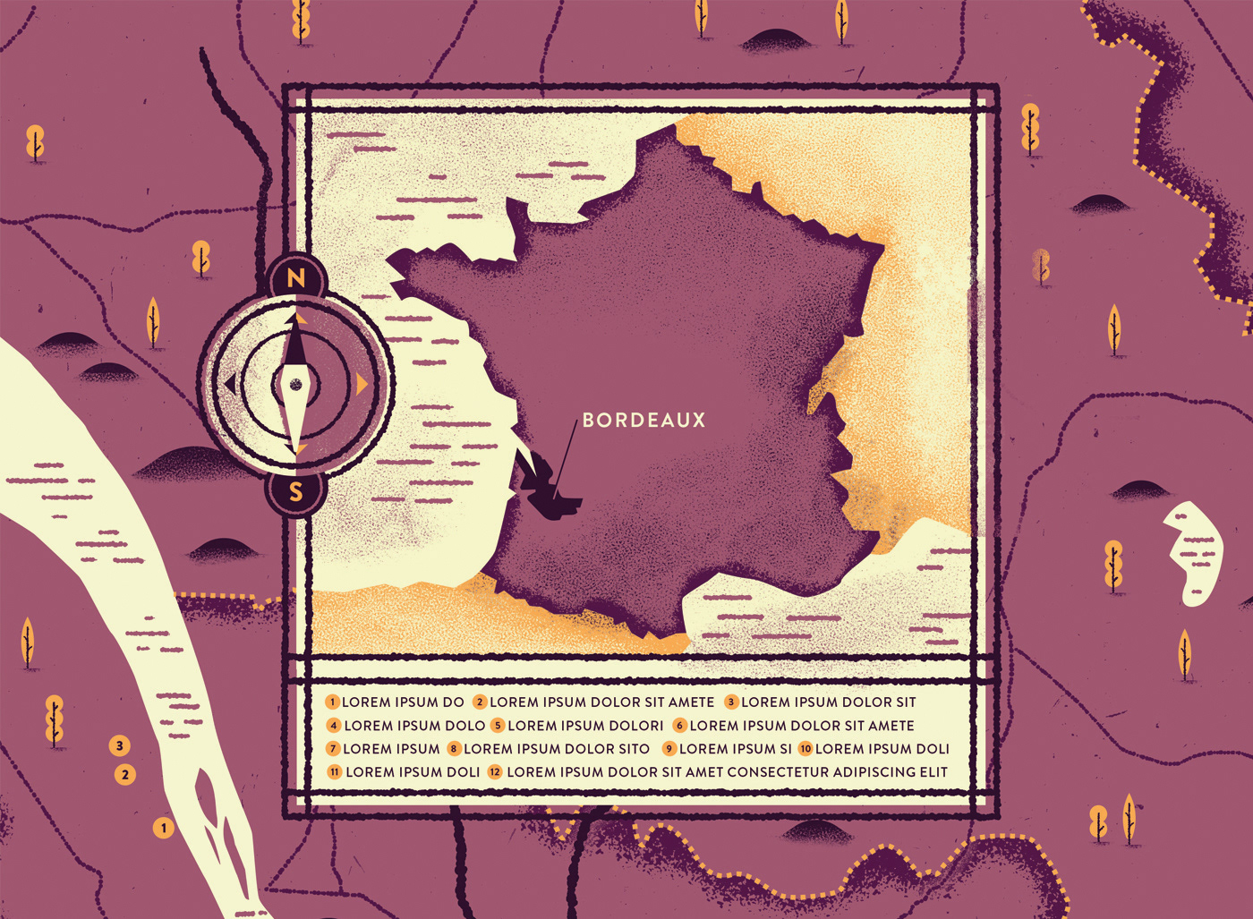 Selected details from a 2017 unused project about Bordeaux and Burgundy regions of wine in France, for a client of Herb Lester Associated.