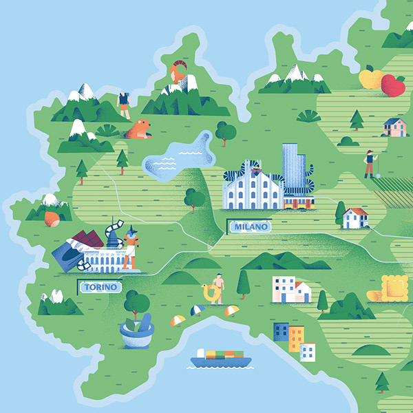 Map of Italy designed for Nutella's 2019 new campaign "Nutella Gemella" curated by Ogilvy Italy. By registering your custom Nutella jar on the dedicated platform, people can discover where in Italy the twin jar is located and be in touch, shortening distances and spreading a message of love and equality. The map aims to show the connections of the twin jars around Italy, focusing on the main cities where the campaign has been launched.