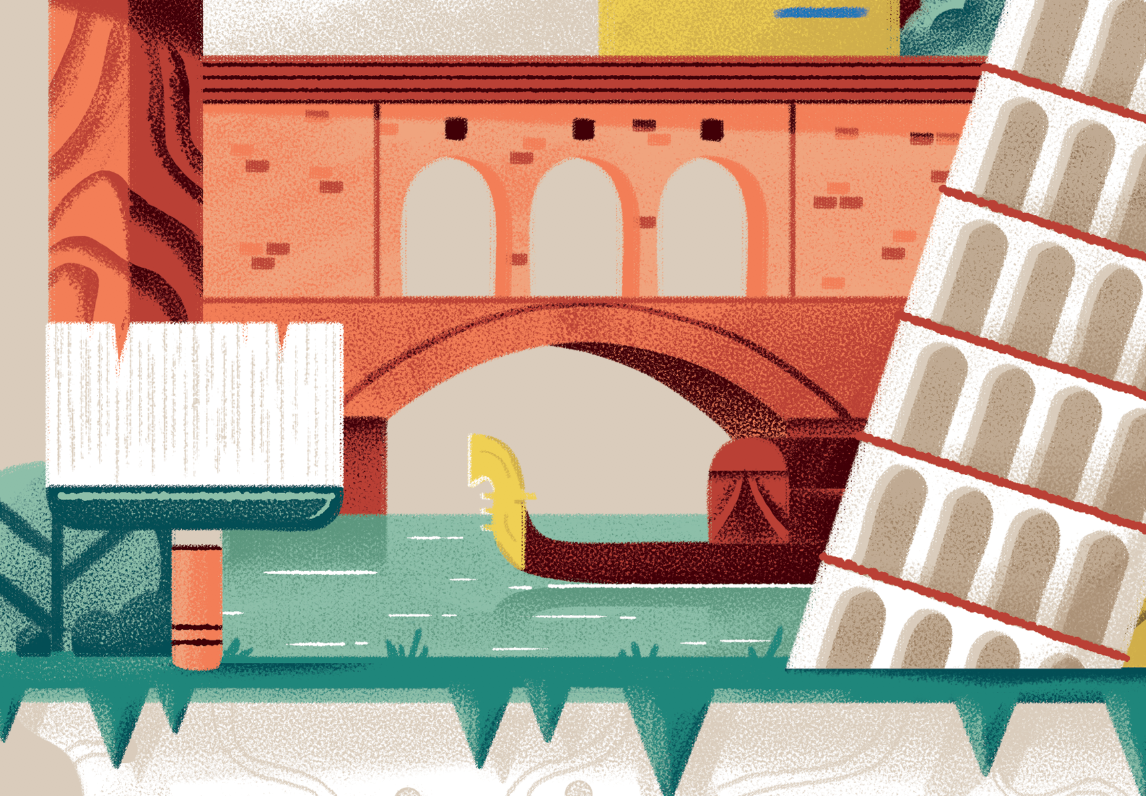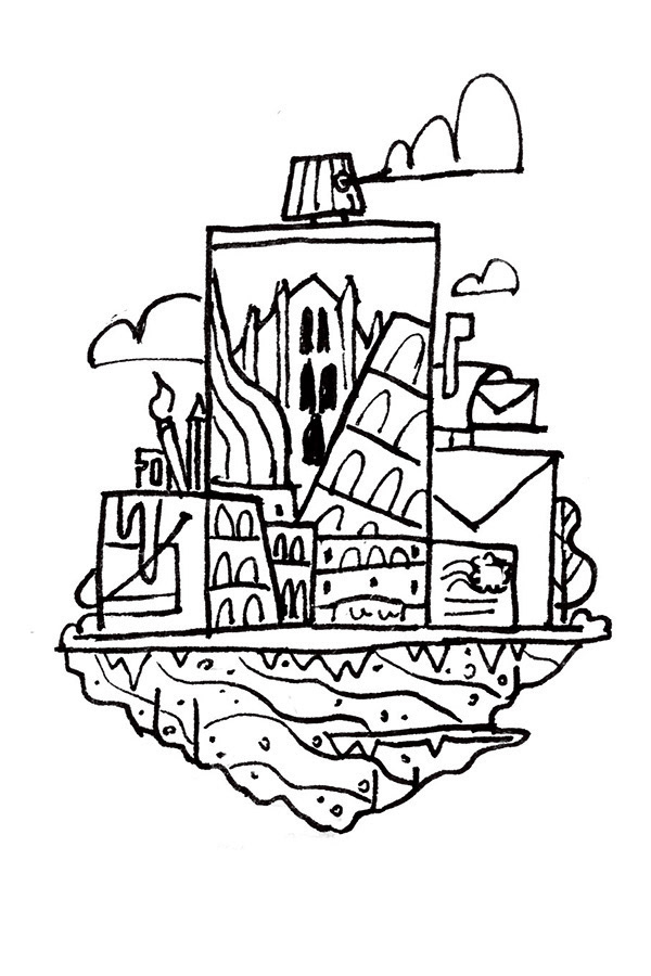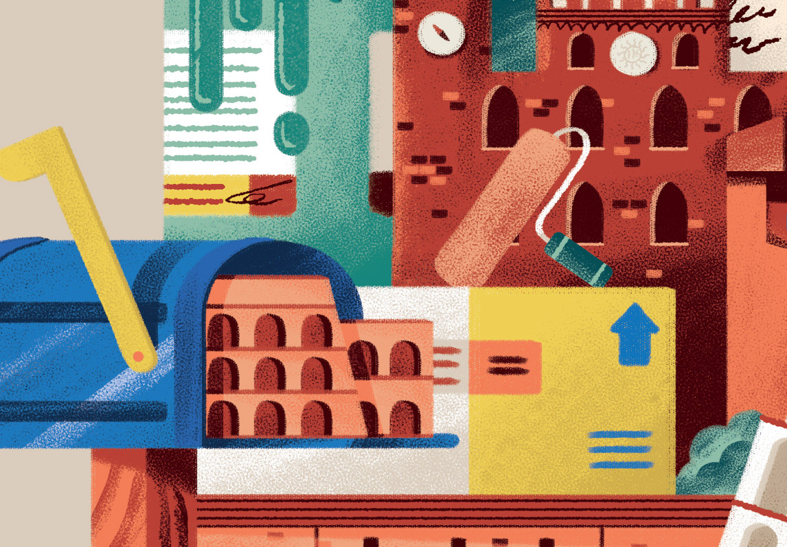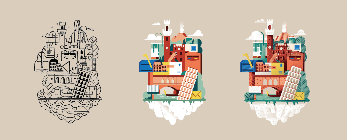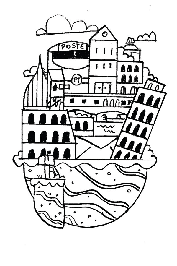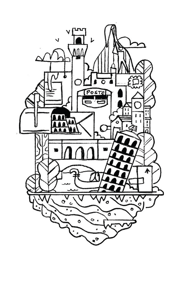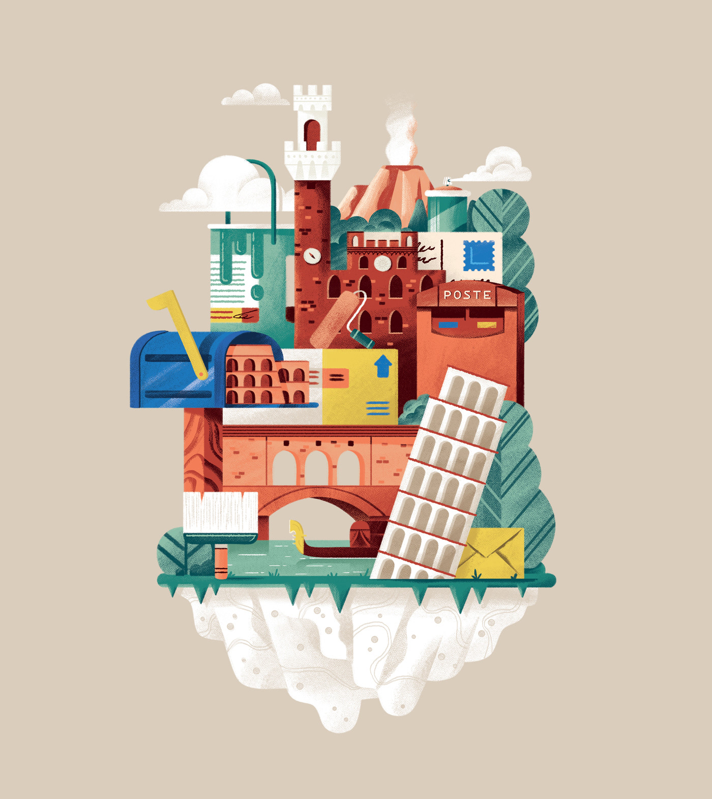 Unused illustration for Poste Italiane, representing the P.A.I.N.T. world.