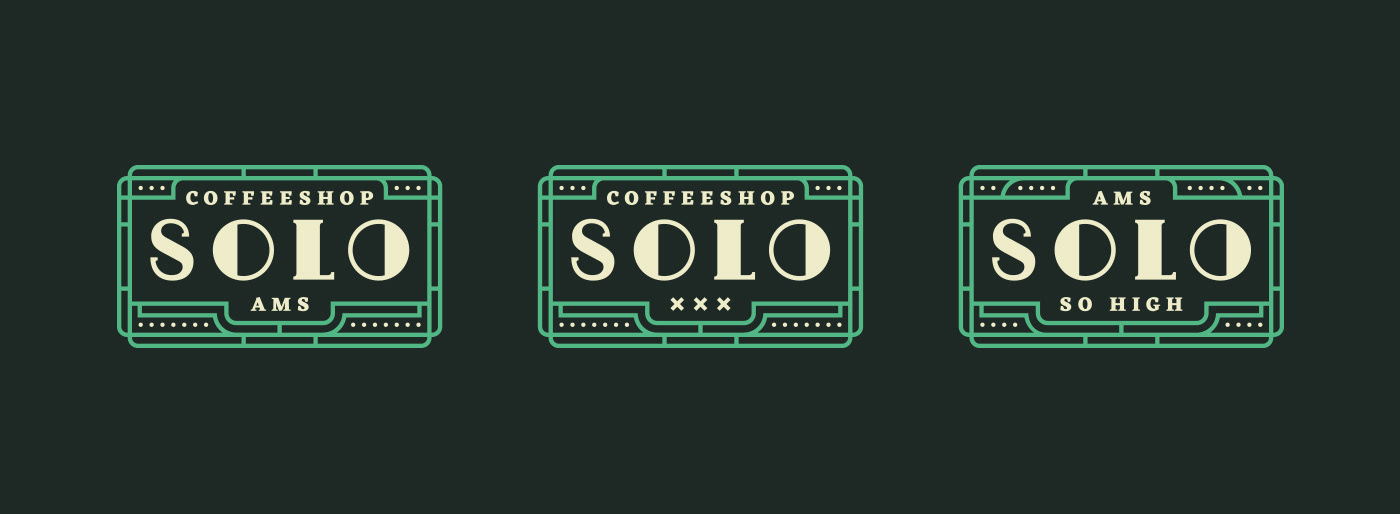 Logo rebranding for SOLO Coffeeshop based in Amsterdam. SOLO Coffeeshop is situated in the heart of Amsterdam, right next to the Red Light District, in a well preserved Art Déco style building that led the aesthetic of the rebranding.