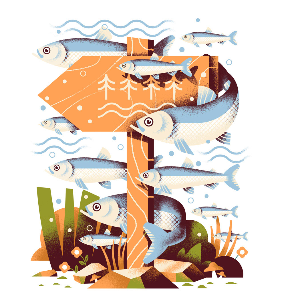 Collection of editorial illustrations designed for Nature Conservancy Magazine from 2022 onwards