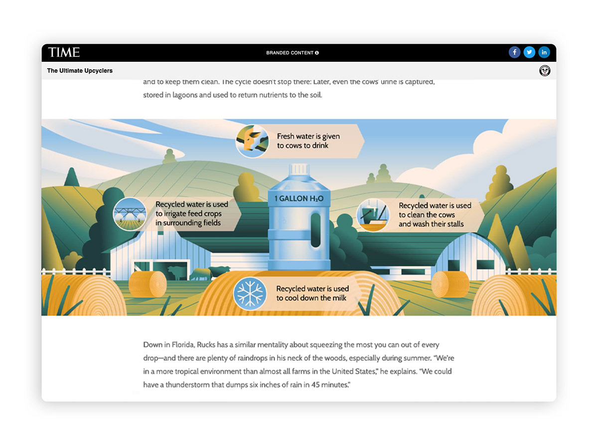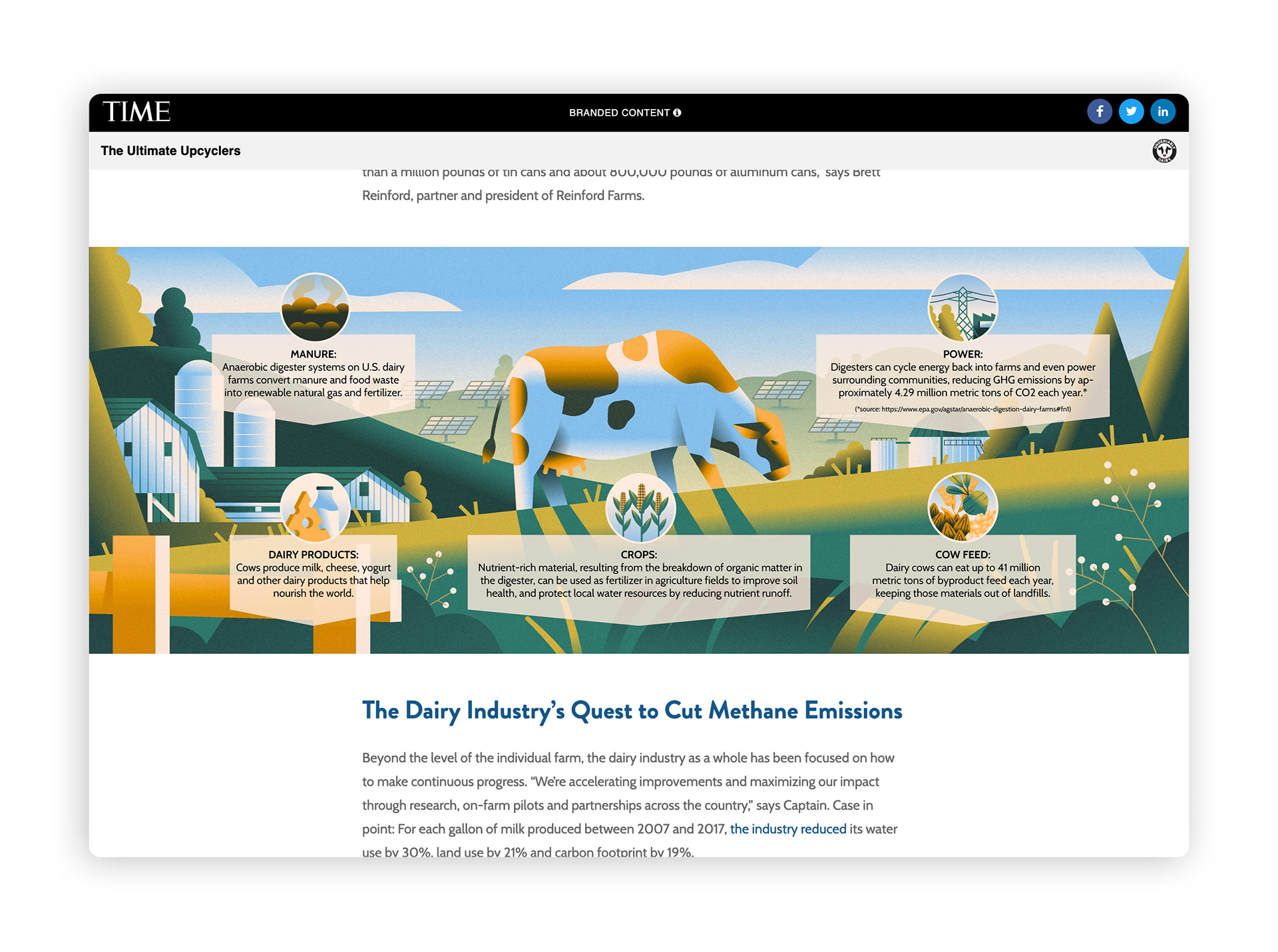 Editorial illustrations for Time's sponsored section, with the art direction of the Red Border Studio I designed these bucolic illustrations for two digital articles.