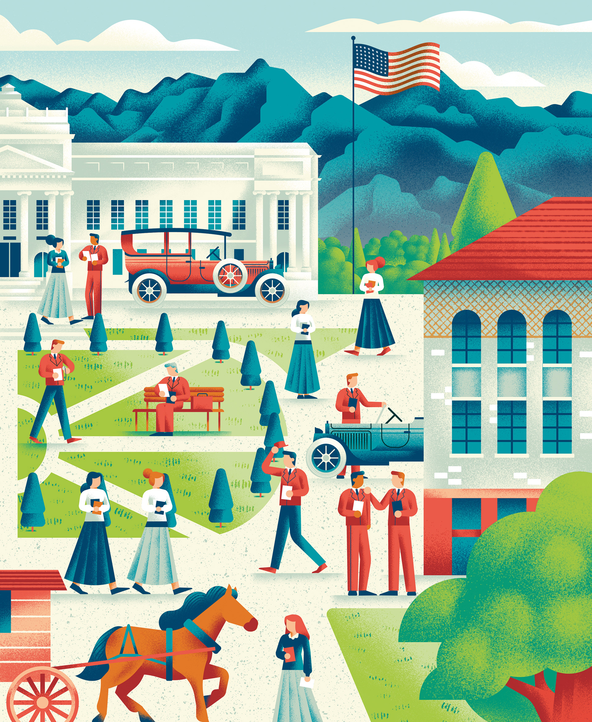 Cover Map and cover story illustrations designed under the art direction of the Austin office of Pentagram for the winter 2023 issue of the University of Utah Magazine.